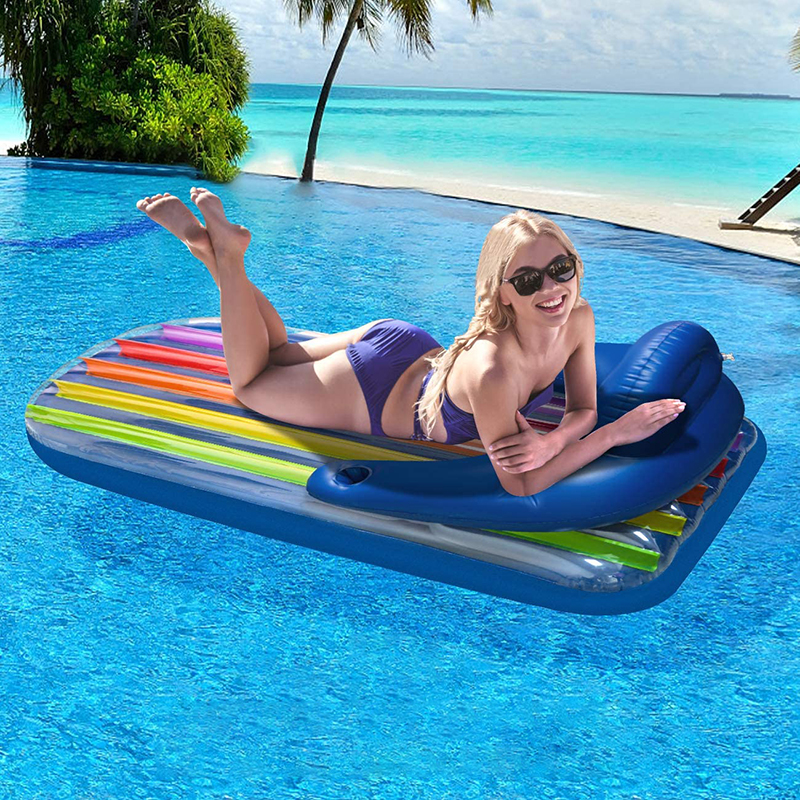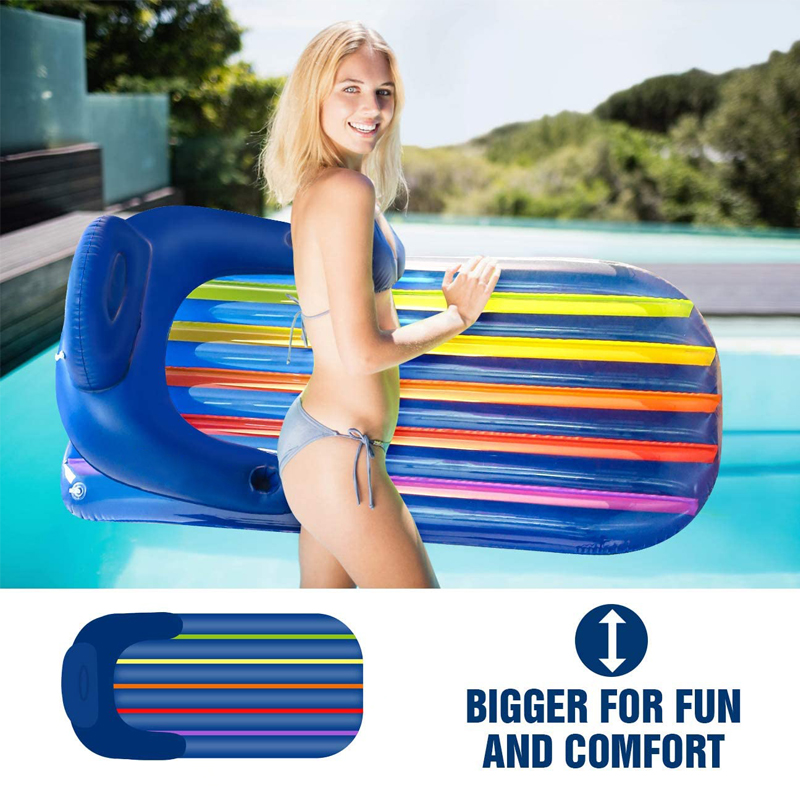 Наслаждайтесь расслабляющими летними днями в этом надувном шезлонге в радужную полоску, идеально сочетающем комфорт и веселье. Благодаря широкой спинке и двойным подлокотникам в нем легко расположиться и расслабиться у бассейна или на пляже. Яркие радужные цвета не только привлекают внимание, но и добавляют энергии вашему отдыху на воде. Загораете ли вы, отдыхаете на воде или просто проводите время с друзьями, этот надувной шезлонг станет вашим идеальным спутником летом.