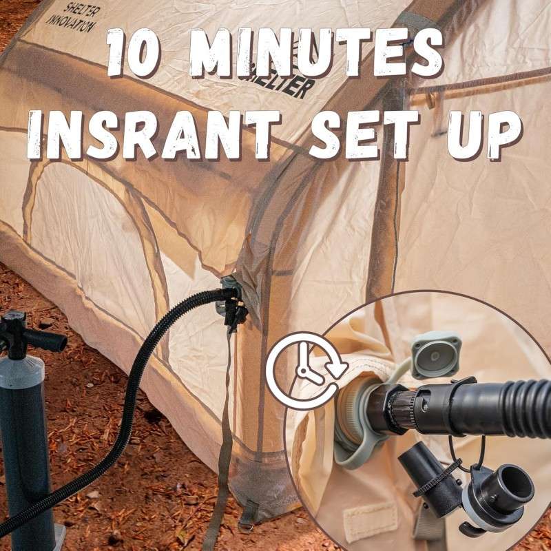 Простота установки. Надувная палатка оснащена ручным насосом и инструкцией. Ее можно установить за 10 минут с помощью воздушного насоса. Нет необходимости устанавливать стойки палатки вручную. Вам нужно только надуть палатку, а время установки сокращается.